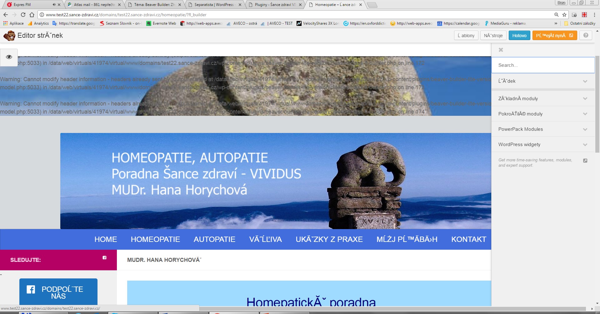 ten zhroucný web vypadal tak, že pravěpodobně došlo k tomu, že všechny písmena s háčkem nebo čárkou se stala nečitelná a vlastně í místo logovací stránky jsem měla změt chybových hlášek. Prvotní příznak byl takový, že na úvodní stránce se mi zobrazuje tato hláška: